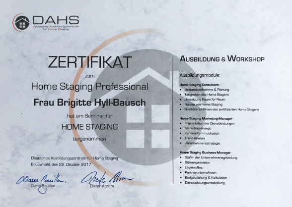 Die Grundlage bildet die Zertifizierung als Home Staging Professional